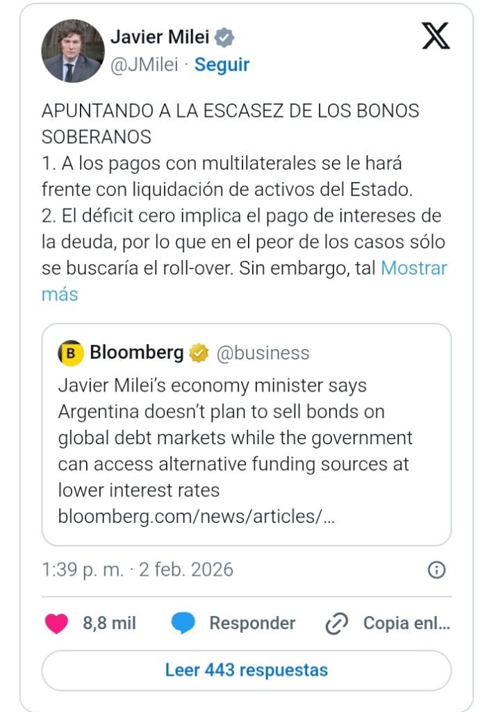 Ante un riesgo país que se mantiene cerca de los 500 puntos básicos, el presidente Javier Milei resolvió que el Estado nacional deje de emitir nuevos bonos de deuda. La decisión apunta a evitar tasas de interés cercanas al 10% anual en dólares, un nivel que el propio gobierno considera inviable para la Argentina.El miércoles 28 de enero, el riesgo país descendió hasta los 498 puntos, el valor más bajo desde junio de 2018. Sin embargo, en los días posteriores se mantuvo prácticamente sin cambios, un ritmo de caída que el Ejecutivo considera insuficiente para avanzar con una nueva colocación de deuda en los mercados internacionales.Este lunes, Milei confirmó un giro en la estrategia financiera: el Tesoro no emitirá nuevos bonos soberanos. El anuncio se produjo luego de que el ministro de Economía, Luis Caputo, adelantara la medida en una entrevista radial. Según el Presidente, la decisión generaría un efecto de “escasez” de títulos que impulsaría su valor y, por ende, reduciría el riesgo país.Tasas altas y supuestos frágilesEmitir nueva deuda implicaría aceptar intereses superiores al 9% anual en dólares. Esa fue la tasa que un grupo de bancos internacionales le ofreció al ministro Caputo en diciembre, a cambio de colocar hasta 5.000 millones de dólares en nuevos bonos, más comisiones. El Gobierno optó por rechazar esa alternativa.La decisión de cerrar la puerta a nuevas emisiones se apoya en una serie de supuestos clave, que hoy están bajo fuerte cuestionamiento político, económico y social.El primero es la continuidad de un superávit fiscal suficiente para afrontar el pago de intereses de la deuda. Para ello, el Gobierno apuesta a sostener un ajuste fiscal estricto. Sin embargo, la caída de la actividad económica reduce la recaudación y obliga a profundizar los recortes de gasto, con impacto directo sobre la economía real y el tejido social.El segundo supuesto es que, llegado el momento de pagar el capital de la deuda, el Gobierno pueda recurrir a otras fuentes de financiamiento: organismos internacionales como el FMI, swaps de monedas o préstamos directos de gobiernos y bancos.No obstante, el reciente pago de 4.200 millones de dólares realizado el 9 de enero dejó en evidencia que varias de esas “canillas” están cerradas. El Fondo Monetario Internacional ya dejó entrever que en 2025 la Argentina devolverá más de lo que recibirá, descartando nuevos desembolsos.En cuanto a los swaps, el Gobierno evita activar nuevos tramos por los costos políticos que implican. Avanzar con China podría generar tensiones con Estados Unidos, mientras que la administración de Donald Trump mantiene una relación de carácter “transaccional” con Milei, en la que los apoyos no son gratuitos.Mercado especulativo y falta de confianzaEl tercer supuesto es que los inversores, tanto locales como internacionales, incrementen la demanda de bonos argentinos. Hasta el momento, no hay señales claras de que eso vaya a ocurrir.La deuda argentina continúa siendo vista desde una lógica principalmente especulativa. Un ejemplo reciente es el informe del banco Barclays, que recomendó comprar el bono GD38 por su potencial de suba para luego venderlo. No se trata de una apuesta de largo plazo ni de una señal de confianza estructural en la economía argentina, sino de una jugada financiera de corto plazo.Un problema estructuralLa deuda pública sigue siendo una pesada carga para el país. Apostar a resolverla únicamente mediante “ingeniería financiera” o maniobras técnicas no parece atacar el problema de fondo. Sin crecimiento sostenido, estabilidad social y un modelo productivo sólido, cualquier estrategia basada solo en el mercado corre el riesgo de profundizar las tensiones existentes.