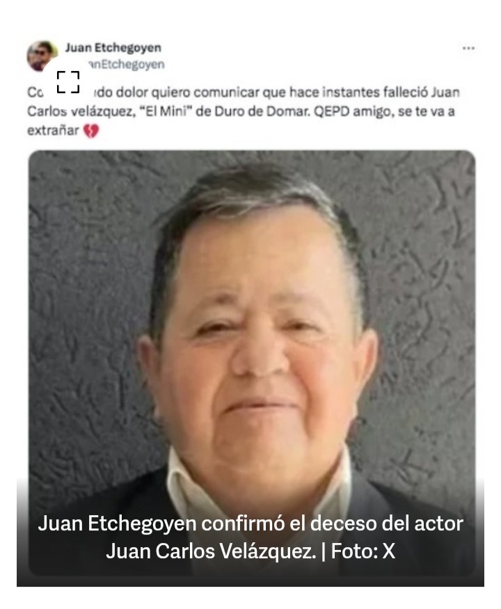 El periodista Juan Etchegoyen dio a conocer la triste noticia a través de sus redes sociales, donde expresó su pesar y recordó con afecto al actor que supo ganarse un lugar en la televisión argentina con carisma y humor.