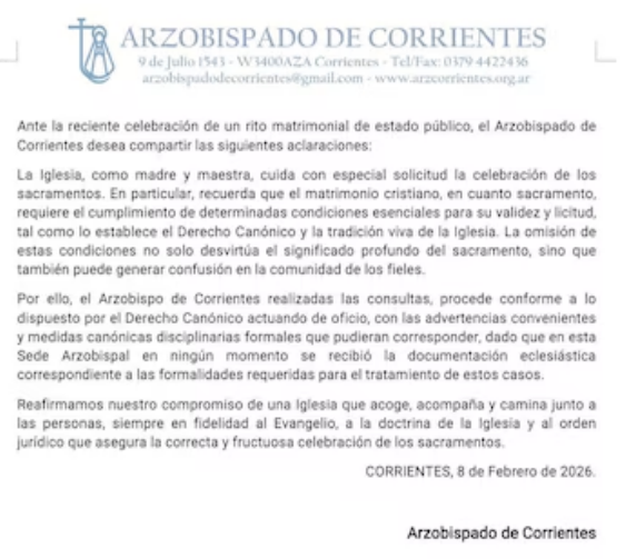El Arzobispado argumentó que la validez del sacramento requiere cumplir con el Derecho Canónico y que la omisión de esas condiciones genera confusión en la comunidad de fieles. Así, el matrimonio fue declarado nulo y el arzobispo anticipó medidas disciplinarias para evitar casos similares en el futuro.