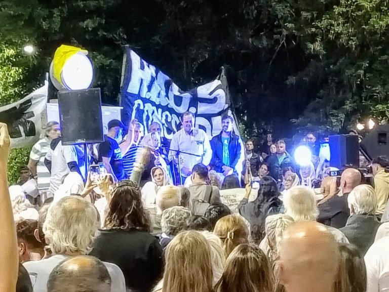 “No claudicamos en nuestro reclamo de justicia con la continuidad de los juicios sobre crímenes imprescriptibles. En homenaje a ellos también denunciamos al presidente de la Nación, quien desde la máxima autoridad del país ataca a todos los ciudadanos y a los sectores que defienden sus derechos; nos embarca en una guerra genocida en Medio Oriente para alinearse con los intereses del país que diseñó y ejecutó el Plan Cóndor y para cometer un genocidio a cielo abierto con el pueblo palestino”, indicó Maschio.