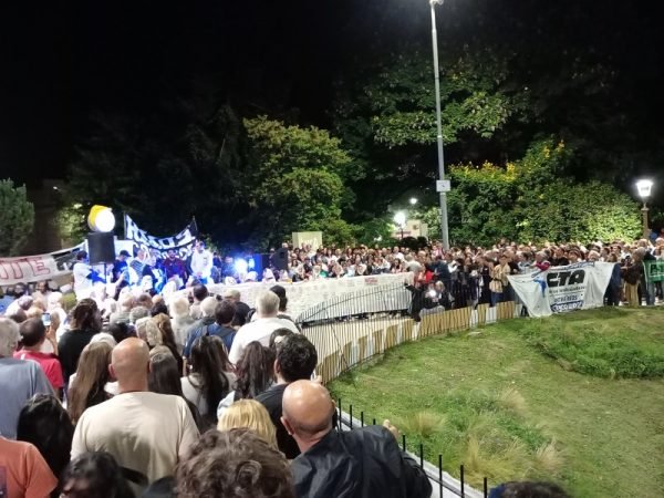 Eduardo “Chiche” Maschio, integrante de la Asociación de Detenidos Desaparecidos, comenzó a leer el documento elaborado por los organizadores. “Cada 24 de marzo nos encontramos para reafirmar nuestro compromiso con el Nunca Más con el Terrorismo de Estado”. Maschio sostuvo que la última dictadura fue la más atroz de la historia argentina. “Hace 50 años una banda de criminales decidió imponer con torturas, desapariciones y asesinatos un modelo económico neoliberal, antiobrero, deshumanizante y antipatria”, señaló.